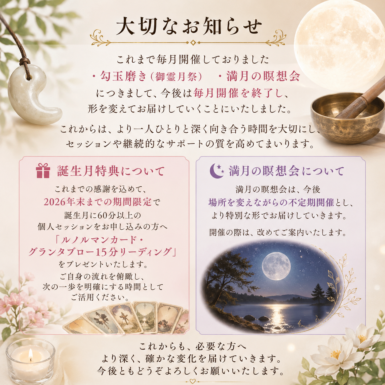 誕生月に60分以上の個人セッションをお申し込みの方へ